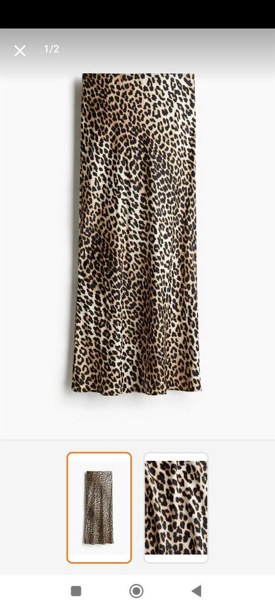 Drapeli ve leopar desenli, koyu kahverengi uzun ve vücuda oturan etek. Yumuşak sentetik kumaştan, günlük sokak tarzına uygun.