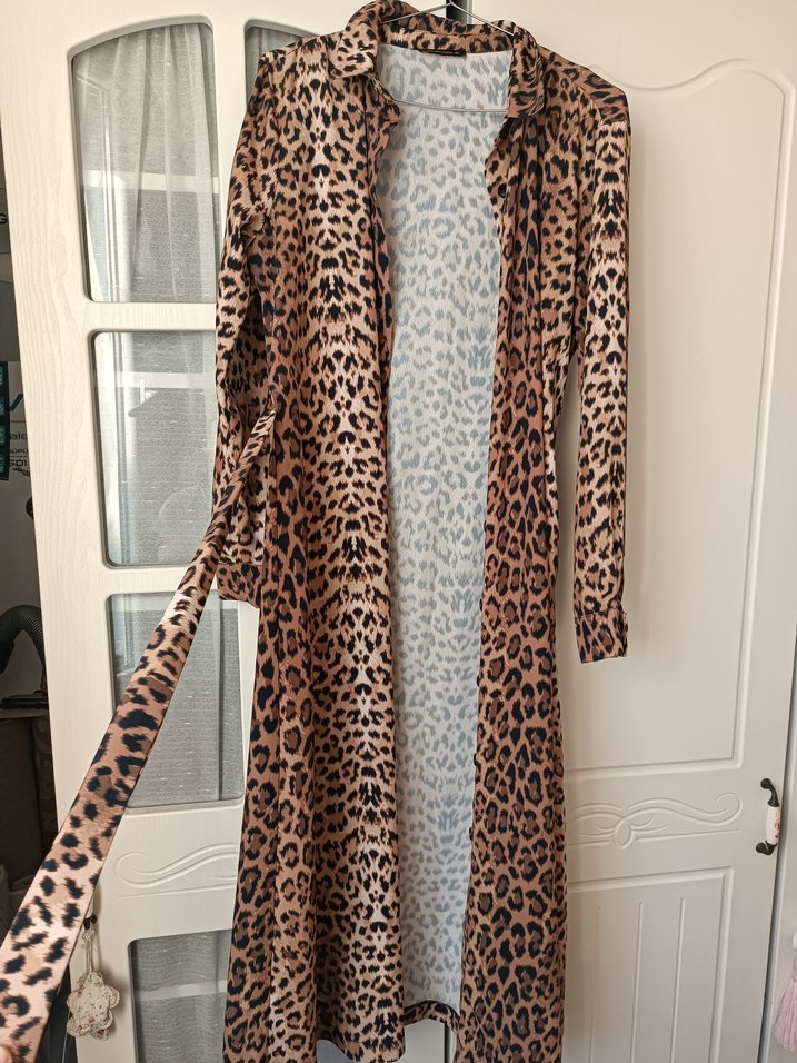 Leopar Desenli Uzun Elbise