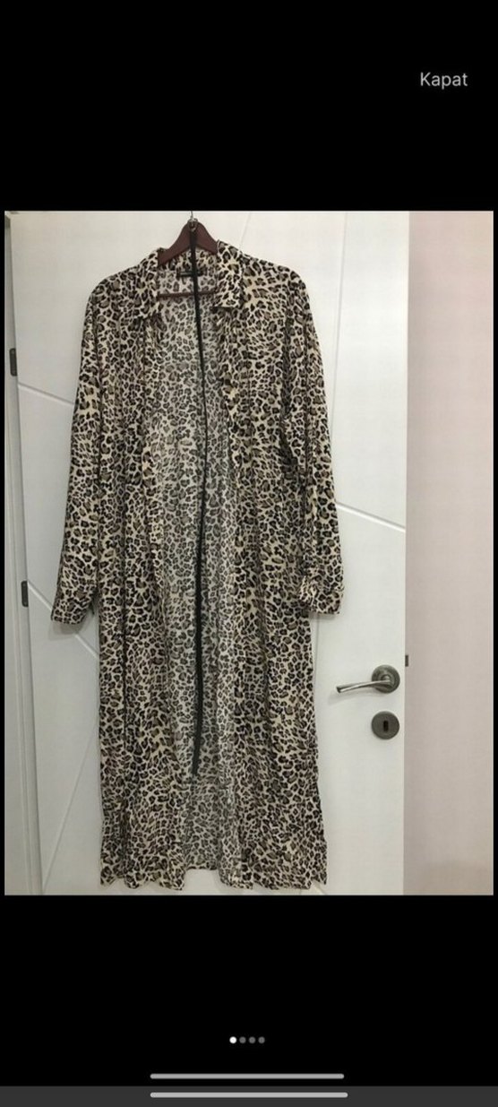 Leopar Desenli Uzun Kadın elbise