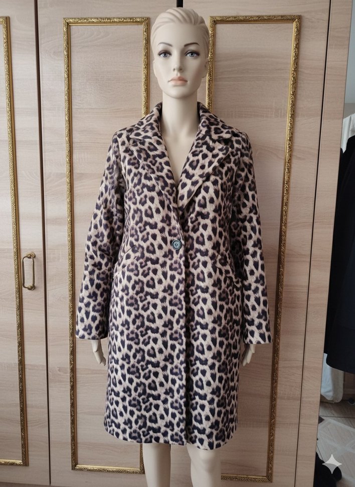 Leopar desenli, uzun ve bol kesim kadın palto. Yumuşak ve sıcak kumaştan, kürk detaylıdır. Rahat ve günlük kullanıma uygundur.