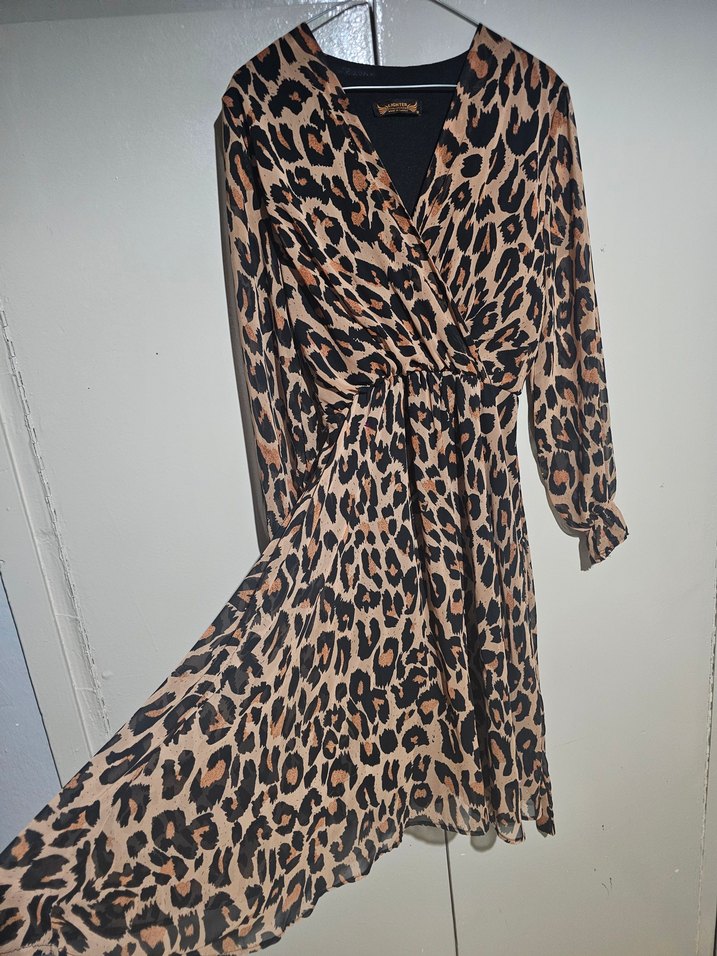 Leopar desenli, belden bağcıklı Astarlı elbise.Sağlam ve Temizdir. Çok az kullanıldı.