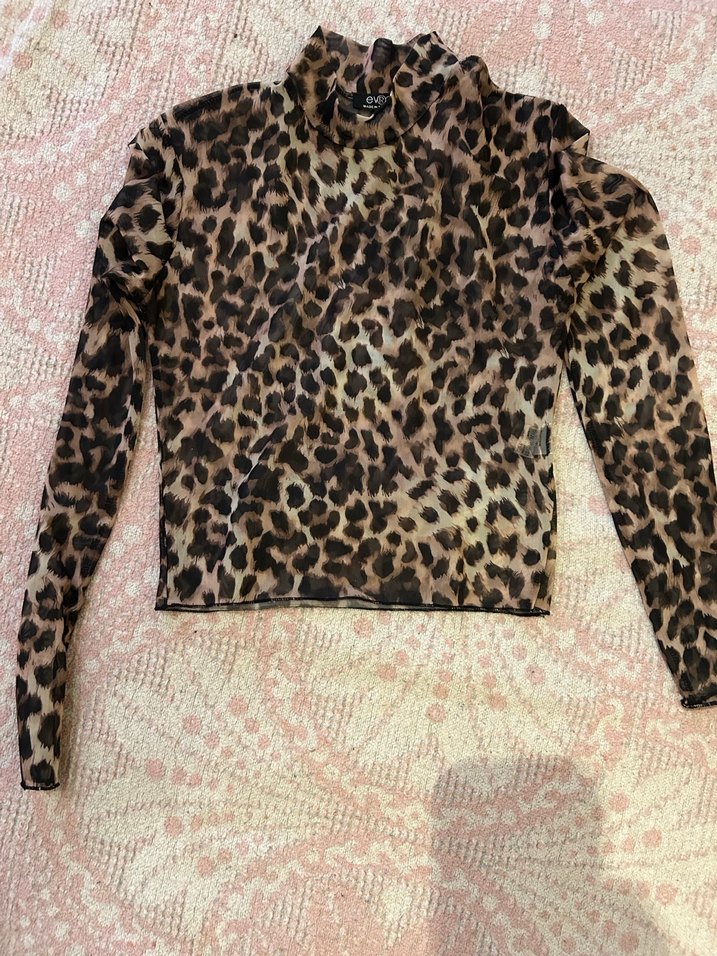 Leopar desenli ve boğazlı uzun kollu, normal midi boyda, dar kesim bir bluz. Koyu kahverengi sentetik kumaştan, grunge punk tarzına uygun.