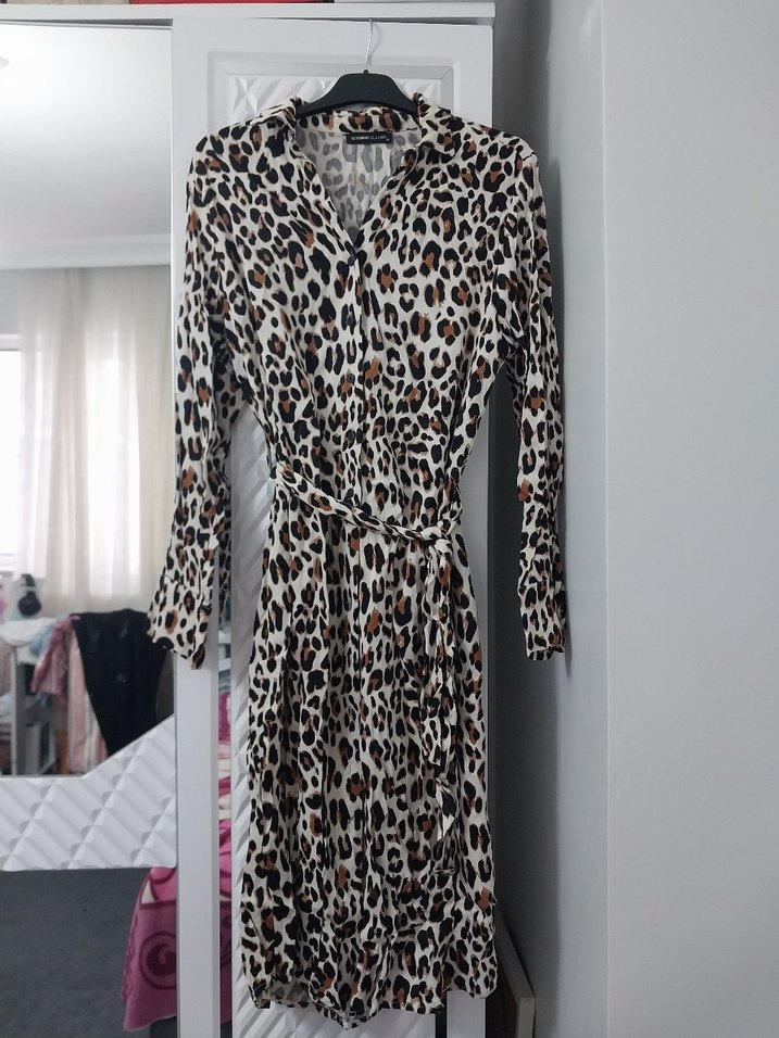 Leopar Desenli Uzun Kollu Elbise Tunik