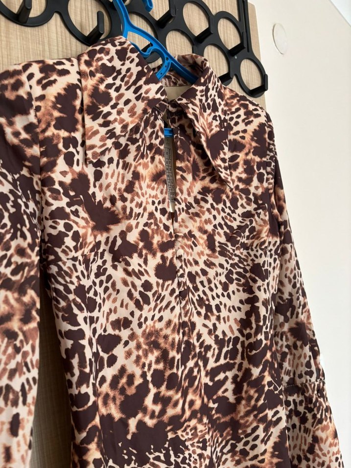 leopar Desenli Uzun Kollu Kadın elbise