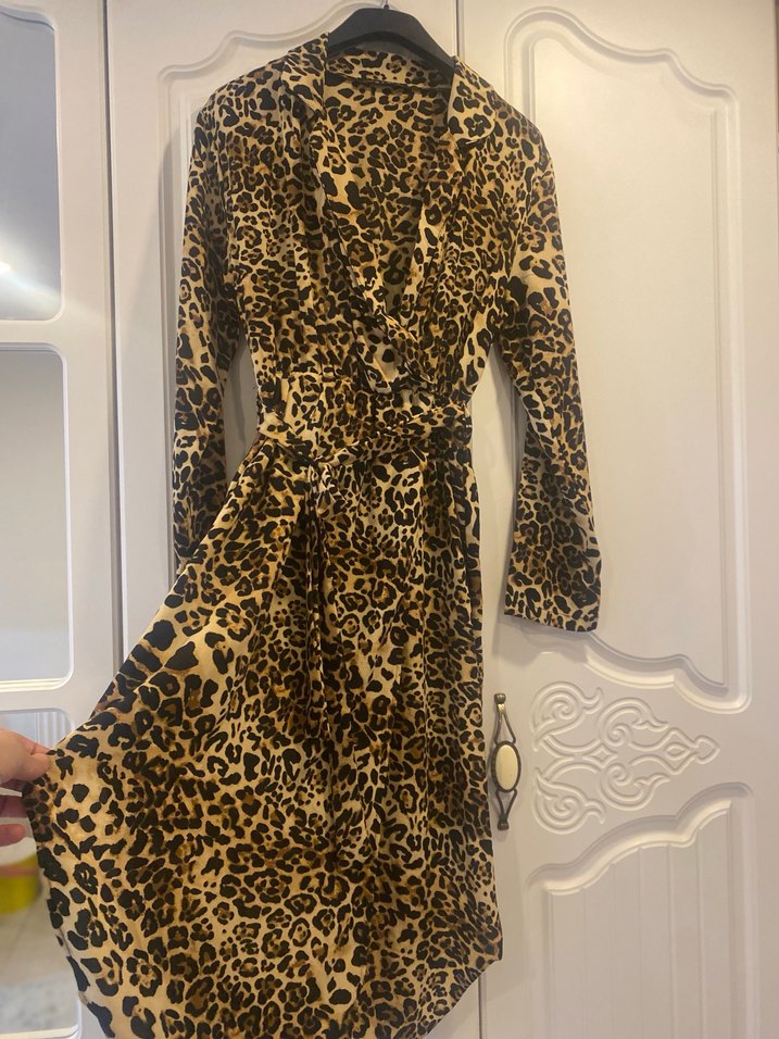Leopar Desenli Uzun Kollu Kadın Elbise
