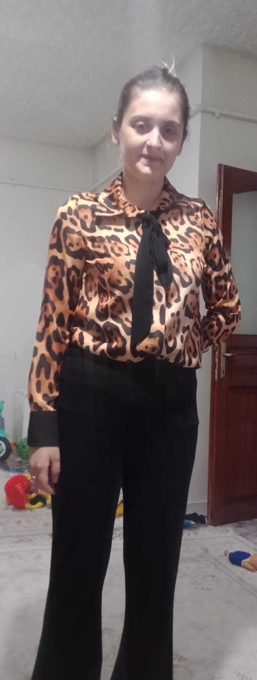 Leopar Desenli Uzun Kollu Kadın Gömlek
