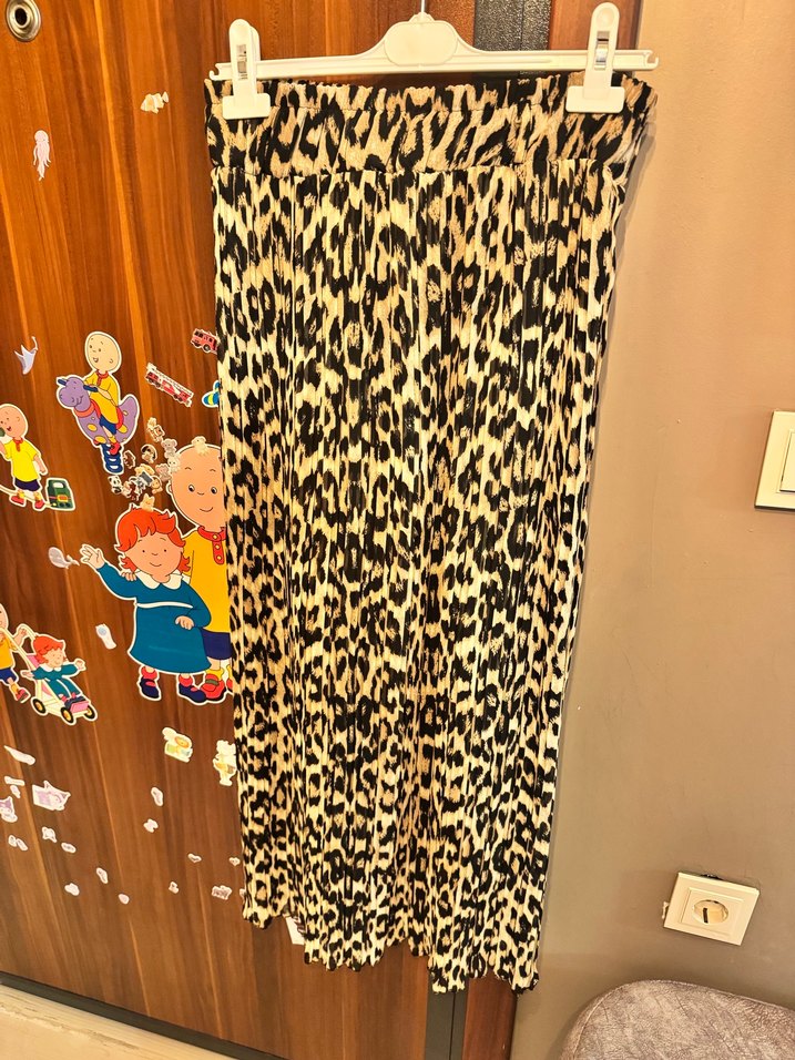 Leopar Desenli Uzun Pilili Kadın Etek