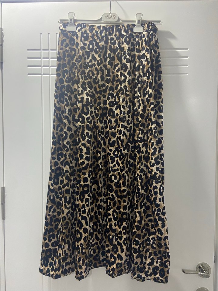 Leopar Desenli Uzun Pilili Kadın Etek