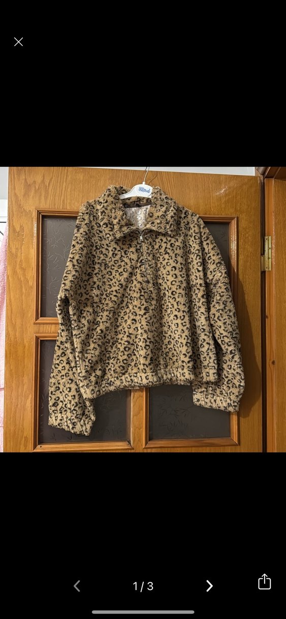 Leopar desenli, uzun ve bol kesim kadın ceket. Yumuşak sentetik kumaştan yapılmış, tüy detaylı ve rahat bir dokusu var. Günlük sokak stili için uygundur.