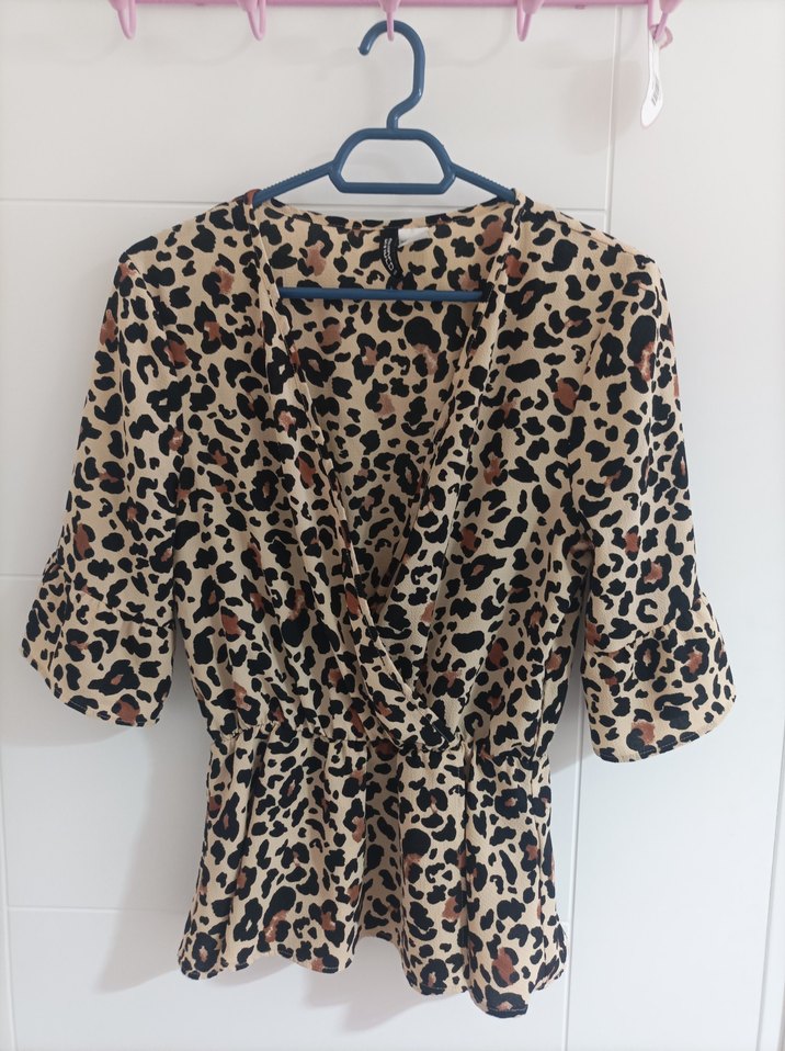 Leopar desenli, V yakalı bluz. Yarım kollu ve midi uzunluktadır. Üstte çok şık bir görüntü verir. Hem günlük yaşantı da hem de özel günlerde kullanılabilir.