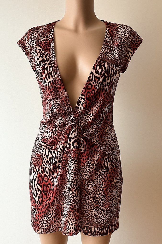Miorre leopar desenli Mini Elbise çekim kaynaklı renk farkı mevcuttur ürün rengi ikinci görseldeki gibidir