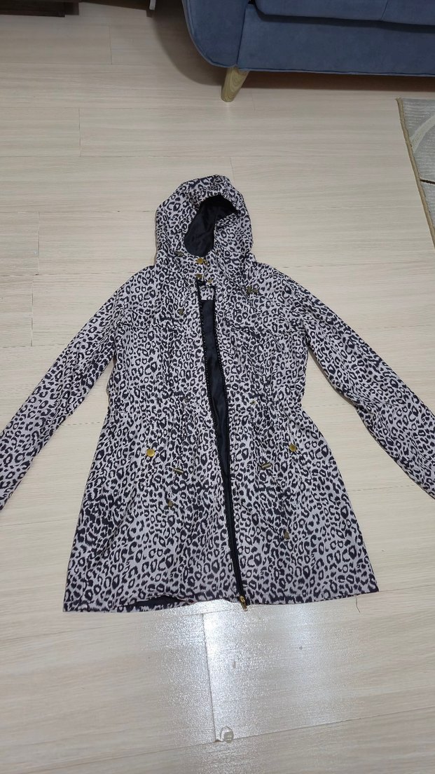 Gri Leopar Desenli yağmurluk..Hiç kullanılmadı beli isterseniz daraltılabilir...kolları kısaltılabilir iplerinin ucu meta detaylı çok şık hafif bir ceket , Street style vücuda oturan kesim.