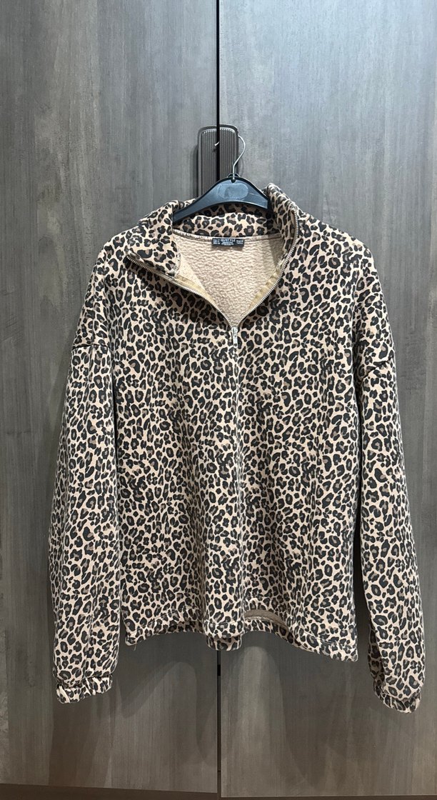 Leopar desenli, kürk detaylı kadın ceketi. Yumuşak ve sıcak kumaştan, uzun kollu, bol ve normal boyda, rahat sokak stili için uygundur. Kahverengi ve gri tonlarda.