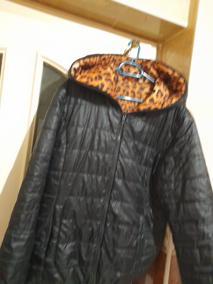 leopar detaylı cift tarafli giyilebilir Kapüşonlu Kadın Ceket