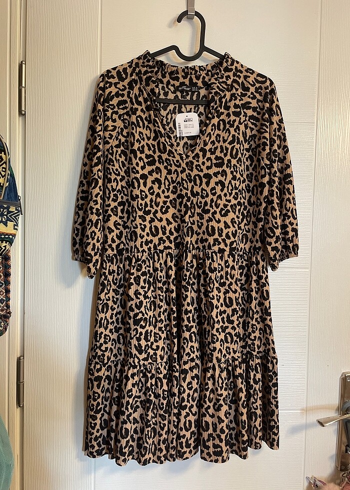 Leopar elbise. Kullanılmadı. Etiketli. M-L için uygun. Tarzım değil hediye gelmişti o yüzden satıyorum.