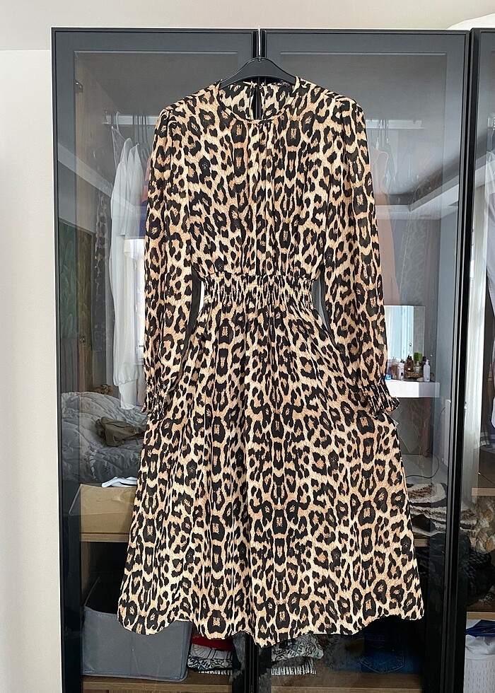 38,40 beden uyumlu beli lastikli içi astarlı diz hizasında leopar elbise