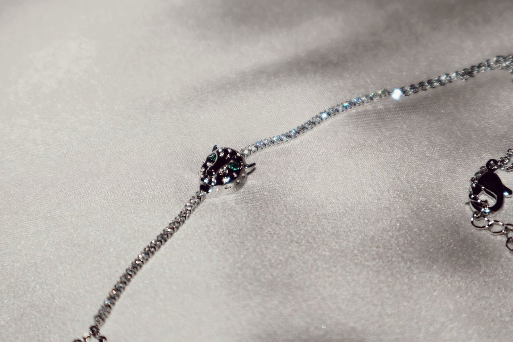 Gri renkte, zincir detaylı ve renkli leopar figürlü bu çağdaş şahmeran, düğünler ve klasik şıklık için uygundur.