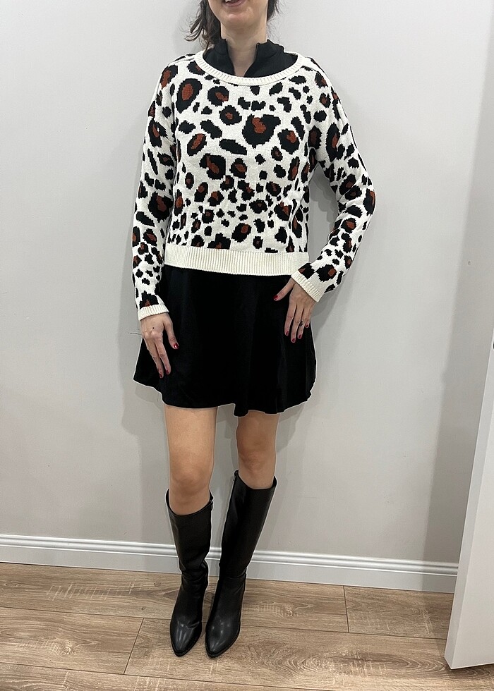 Leopar kalın triko kazak