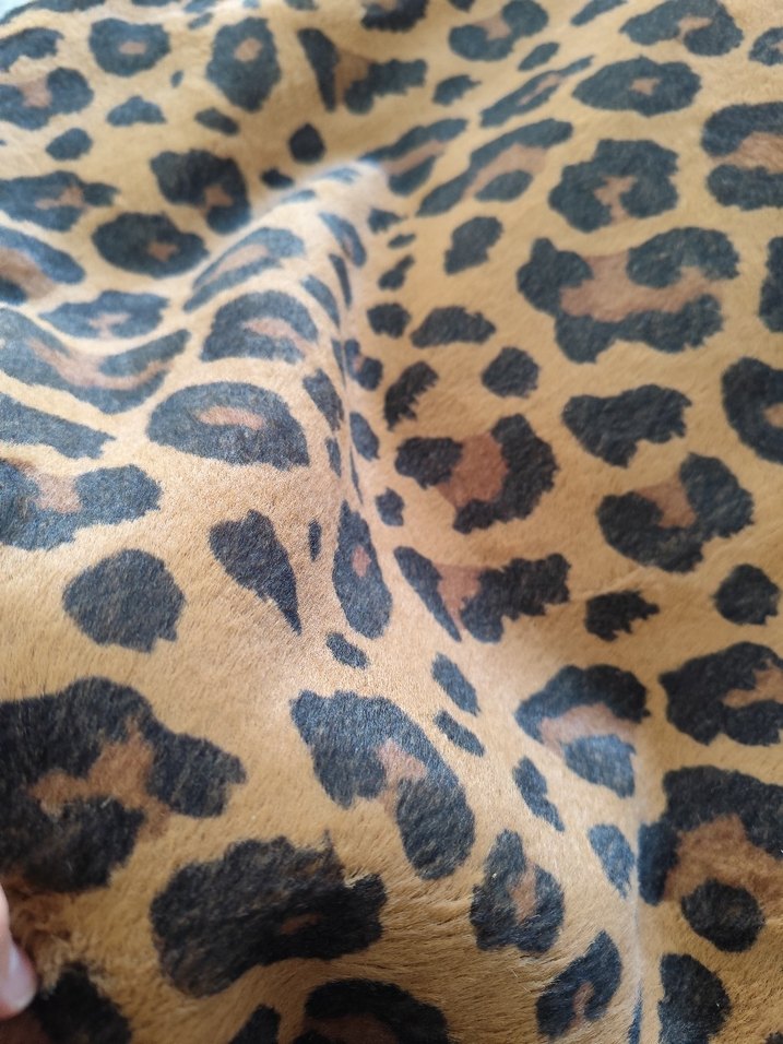 Bohem tarzda, camel renkli, renkli leopar desenli ve kürk detaylı, yumuşak sentetik kumaştan kadın kaban kumaş yeni ürün metresi 200