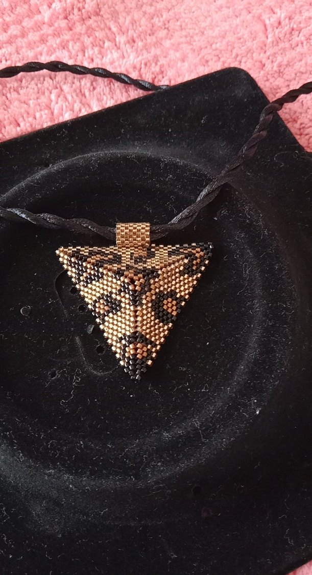 Miyuki orjinal cam boncuk, leopar desenli el yapımı kolye. 5*5cm ister altın zincir ister kordon ile kullanılabilir.