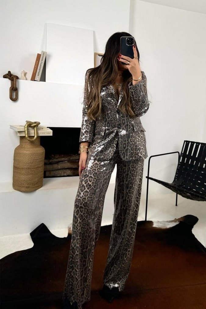 Leopar Payetli Pantolon Gizli bel lastikli Bol paça Astarlı S Beden Ölçüleri: Bel - 90 Basen - 106 Boy - 104 İç Bacak - 80 Not: Her beden arası 4 cm fark olur