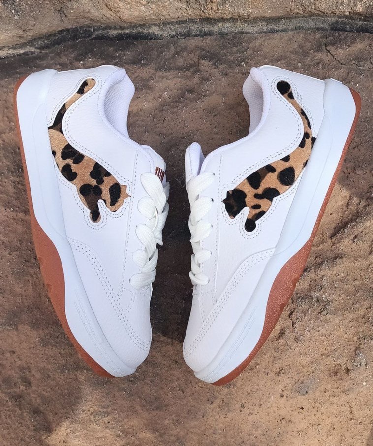 Beyaz çıta puma 37 38 39 40 numaraları mevcuttur Cilt kumaş Özel leopar kumaş baskı Renkli çift taban Kauçuk kaymaz taban 1400 TL