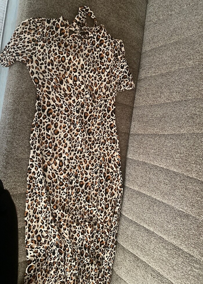 Leopar sırt dekolteli elbise