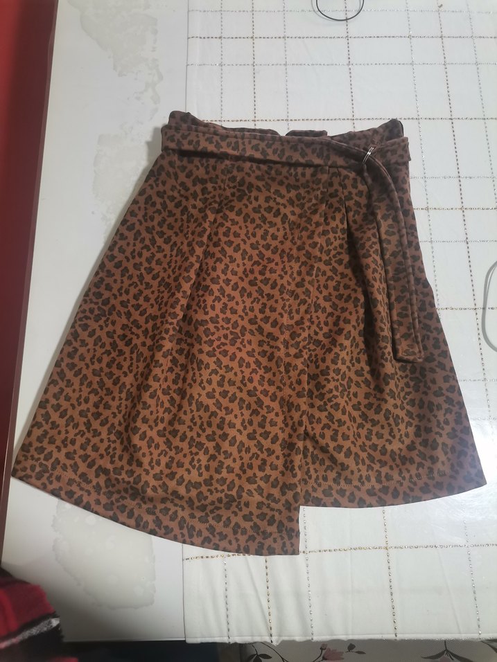 Süet etek beli lastikli ve kendinden kemerli, sorunsuz