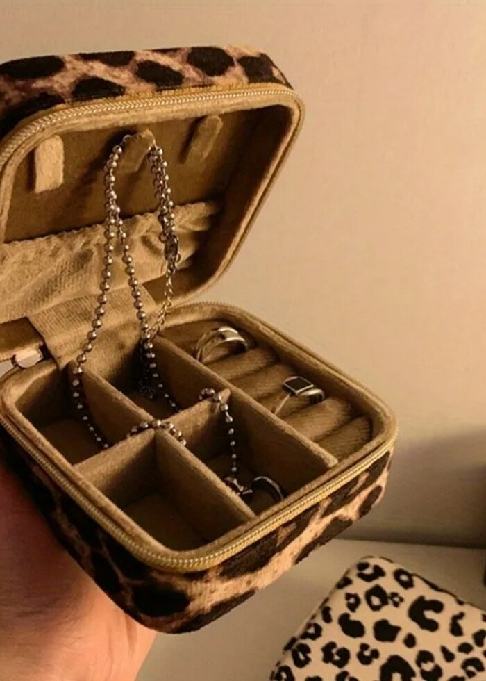 Leoparlı yüzük kolye takı kutusu sıfır.