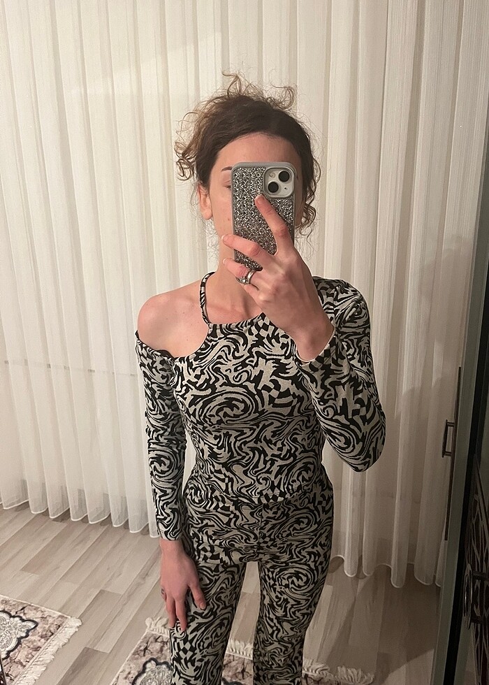 Harika bir duruşu var rahatlıkla giyilebilir s beden ve xs rahatlıkla giyebilir