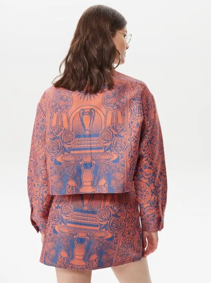 LES BENJAMİNS Bol Kesim, Yüksek Yaka, Baskılı Kadın Ceket