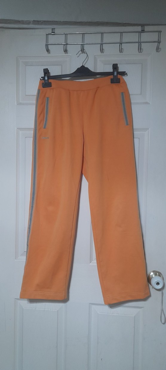 Turuncu ve gri tonlarda, cepli, normal boyda ve bol kesim eşofman altı. Yumuşak ve sıcak kumaştan, spor ve günlük kullanıma uygun.