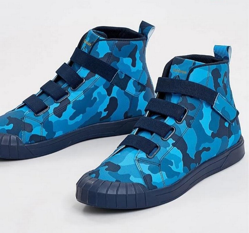 Letoon markalı, lacivert kamuflaj desenli, cırt cırtlı spor bot. Renkli ve rahat kauçuk tabanlı tasarım.