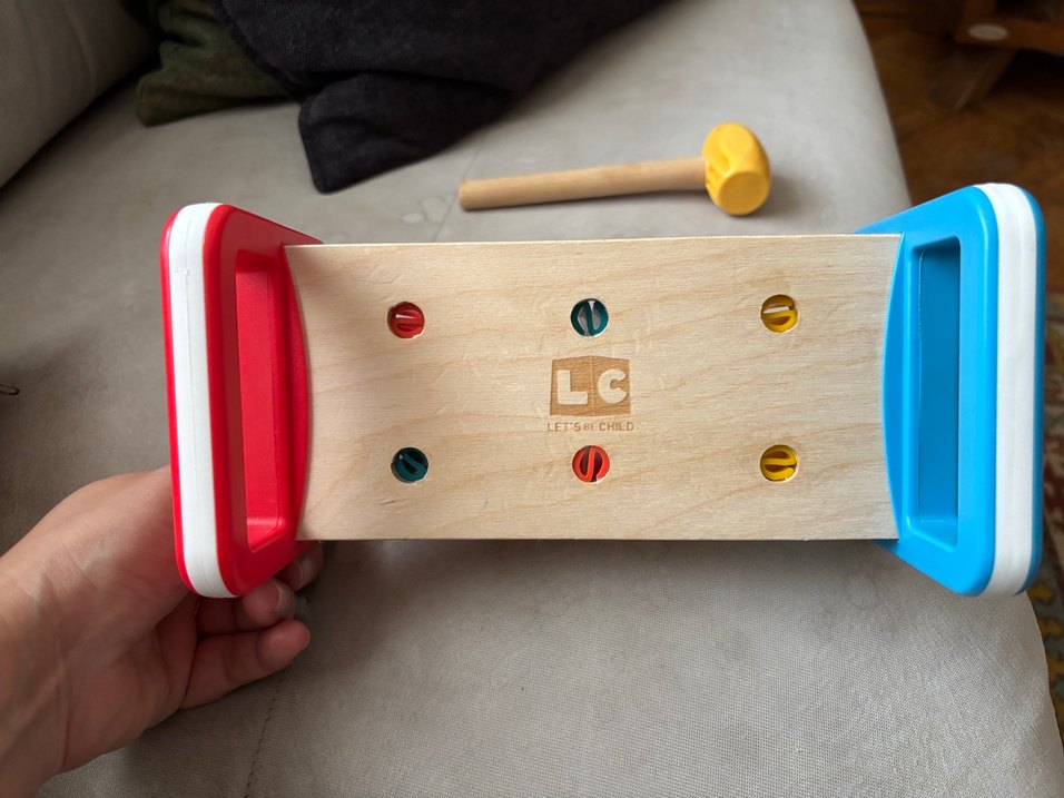 Ahşap malzemeden yapılmış, renkli deliklere ve çekiçle oyun imkanı sunan eğitici oyuncak. Motor becerileri geliştirmeye yardımcı olur. ️