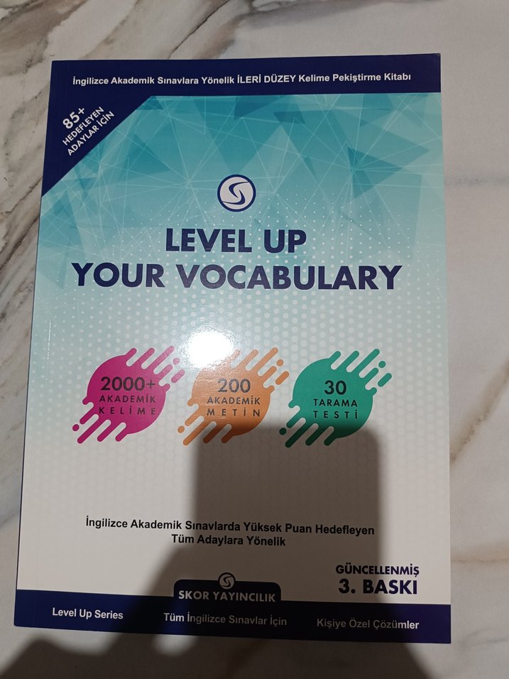 İleri düzey İngilizce akademik kelimeler, metinler ve tarama testleri içeren, yüksek puan hedefleyen adaylar için hazırlanmış kelime geliştirme kitabı .