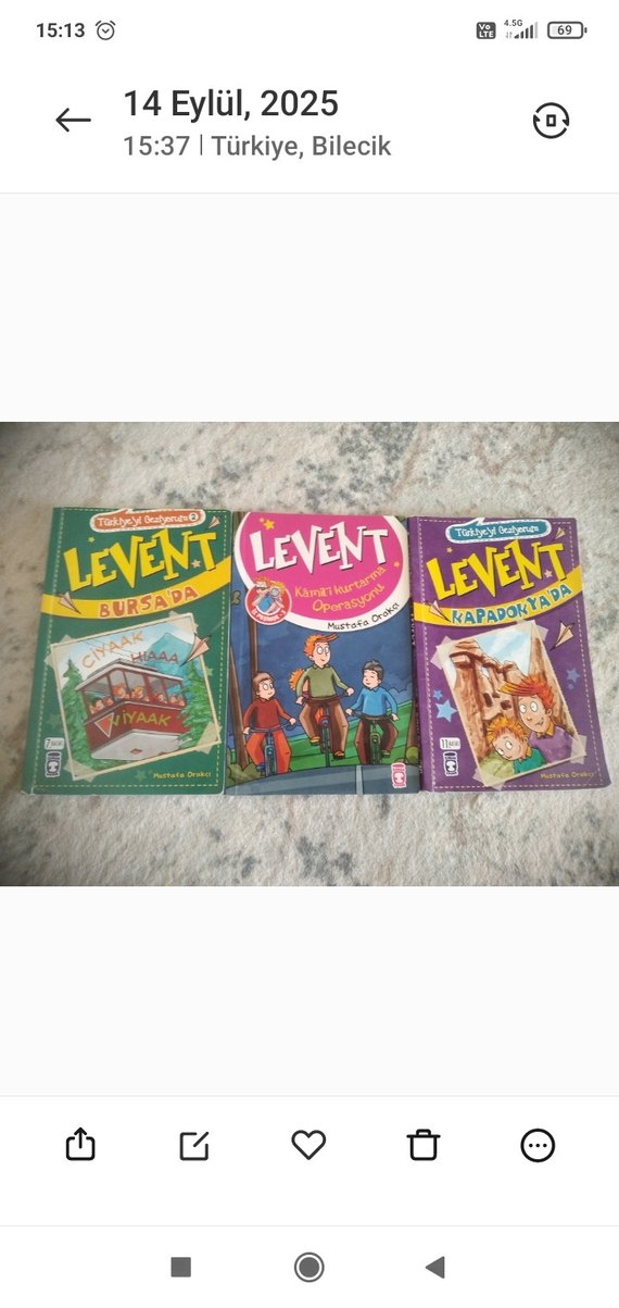 Mustafa Özel'in yazdığı Levent çocuk kitapları serisi, renkli çizimlerle üç macera dolu kitabı içerir.