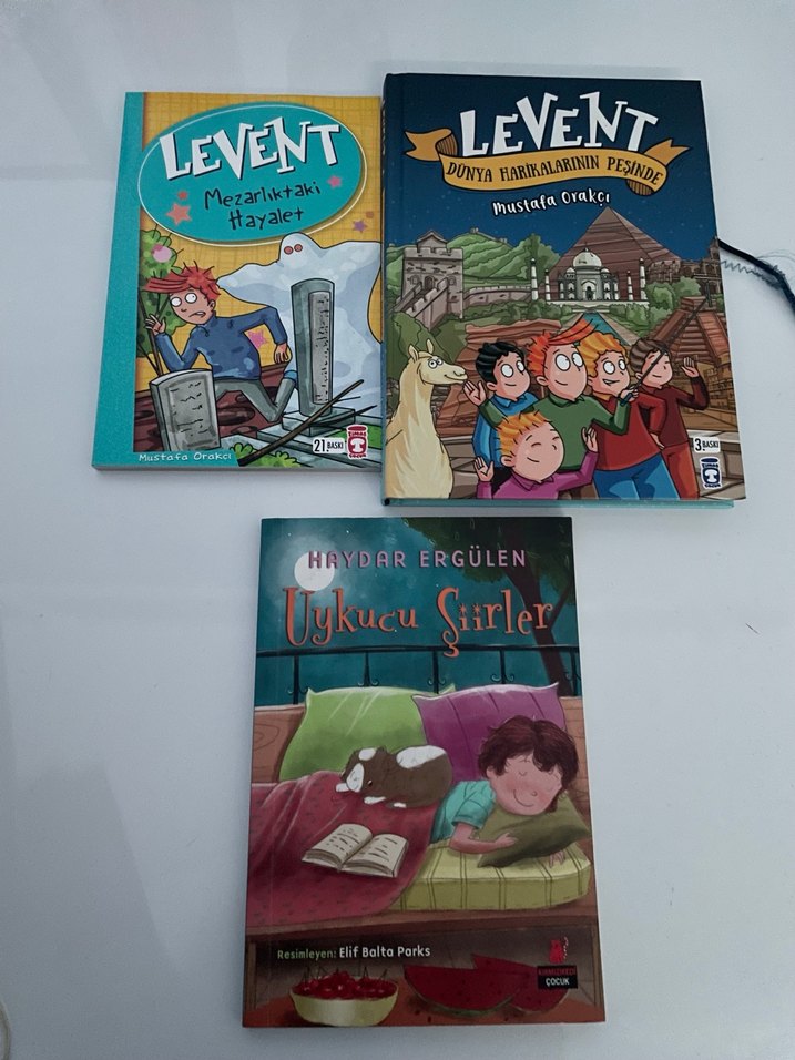 Levent serisi ve Haydar Ergülen'in Uykucu Şiirler adlı çocuk kitapları seti, macera ve şiirler içerir.