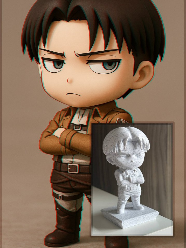 3D yazıcımla yarattığım bu Levi Ackerman heykelciği, mermer efektiyle 10 cm boyunda, Attack on Titan’ın keskin bakışlı kaptanını yansıtan bir sanat denemesi. Her detayıyla karakterin soğukkanlı duruşunu ve savaşçı ruhunu yakalamaya çalıştım. Anime sanatı ve 3D baskının birleşimiyle ortaya çıkan bu parça, koleksiyonlara zarif bir dokunuş katıyor. Sizce nasıl olmuş? Yorumlarınızı bekliyorum! #LeviAckerman #AttackOnTitan #3DBaskıSanatı #AnimeHeykel #MermerEfekt #FanArt #KoleksiyonSanatı #ShingekiNoKyojin