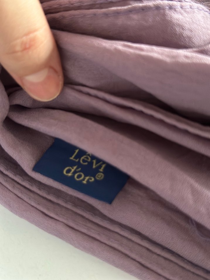 Levi d'or kadın şal, yumuşak keten kumaş ve mor renkte, Paris normcore ve avant-garde tarzını birleştirir.