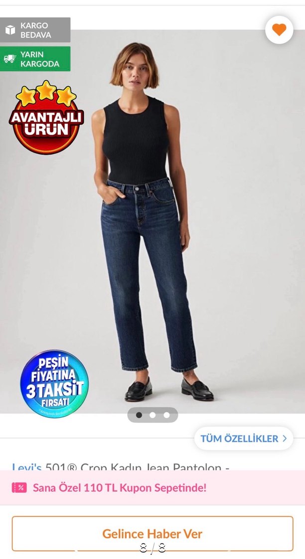 Levi's 501® Crop siyah kadın jean pantolon, normal boyda ve regular fit kesimdedir. Denim kumaştan yapılmış, desen içermeyen, günlük kullanıma uygun şık bir modeldir. 160 cm’den kısa olanlar tercih etsin