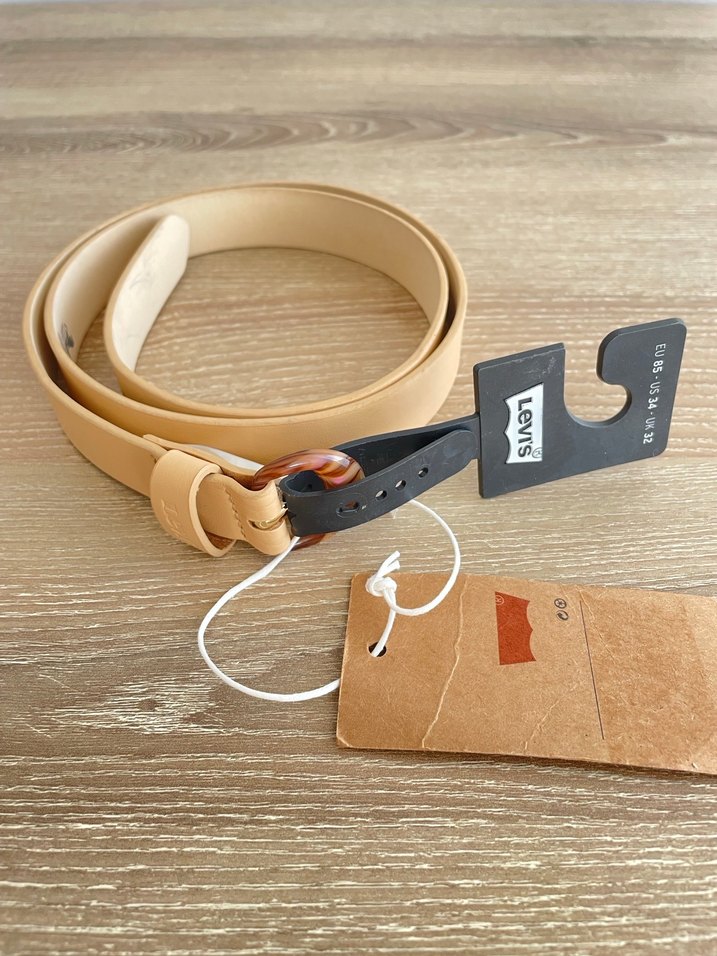 Levis Kadın Kemer, Orjinaldir, Hakiki deridir, Yeni ve etiketlidir, Kullanılmamıştır, Herhangi bir deformasyon yoktur, Krem renk, Altın rengi toka detaylıdır, Beden:85, Uzunluk: 99cm, En: 2,5cm, İç uç kısmında paketlemeye bağlı leke mevcut ama görünen kısında değil, Son fotoğrafta ekledim