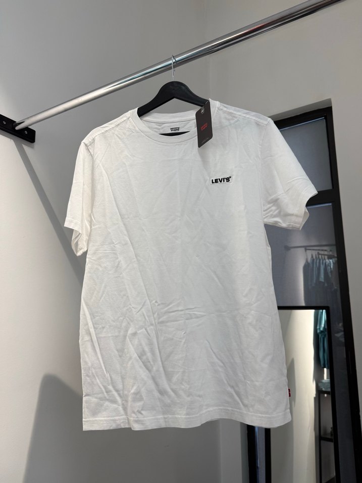 Levi's marka beyaz erkek tişört, kısa kollu ve yuvarlak yaka tasarıma sahiptir. Pamuklu kumaştan üretilmiş, rahat kesimiyle günlük kullanıma uygundur. Ürün sıfırdır, orijinaldir. #levis #leviserkektişört
