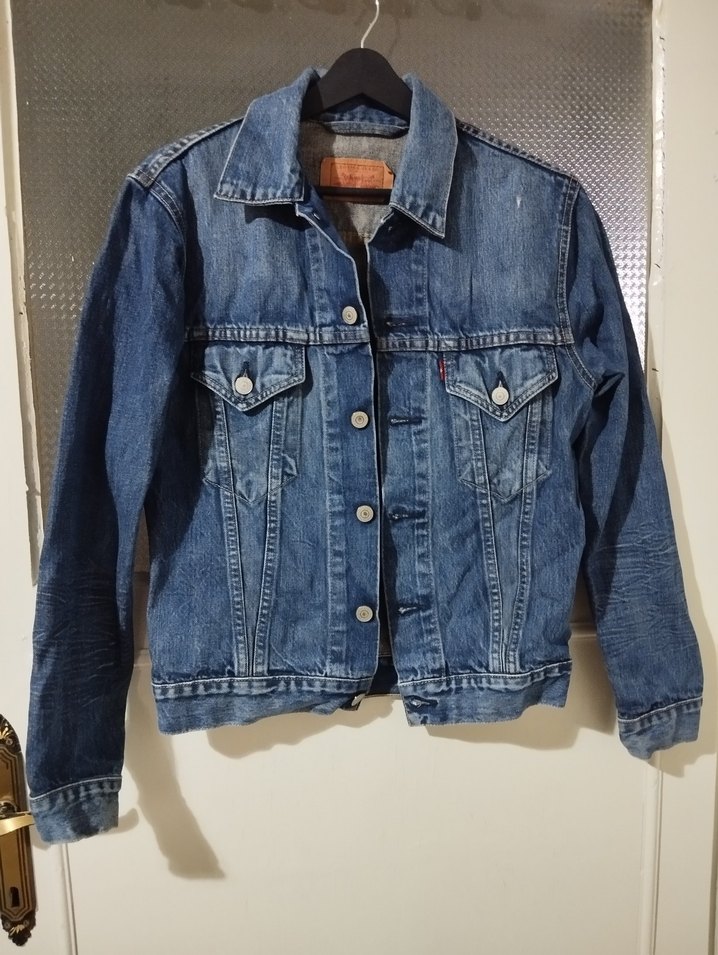 Mavi renkli, düğmeli ve uzun kollu denim ceket. Normal kesim ve yakalı, günlük rahat sokak stili için uygun. Tertemiz hatasız bir ceket. Orijinal üründür. Levi's kalitesi zaten, çok tarz duruyor. Kollarında yırtık ve eskitme detayları var çekmemişim, eklerim orayı da. Düğmeleri ilikli halde iki kol arası mesafe:56 cm Ceket boyu:46 cm Kol boyu:60 cm