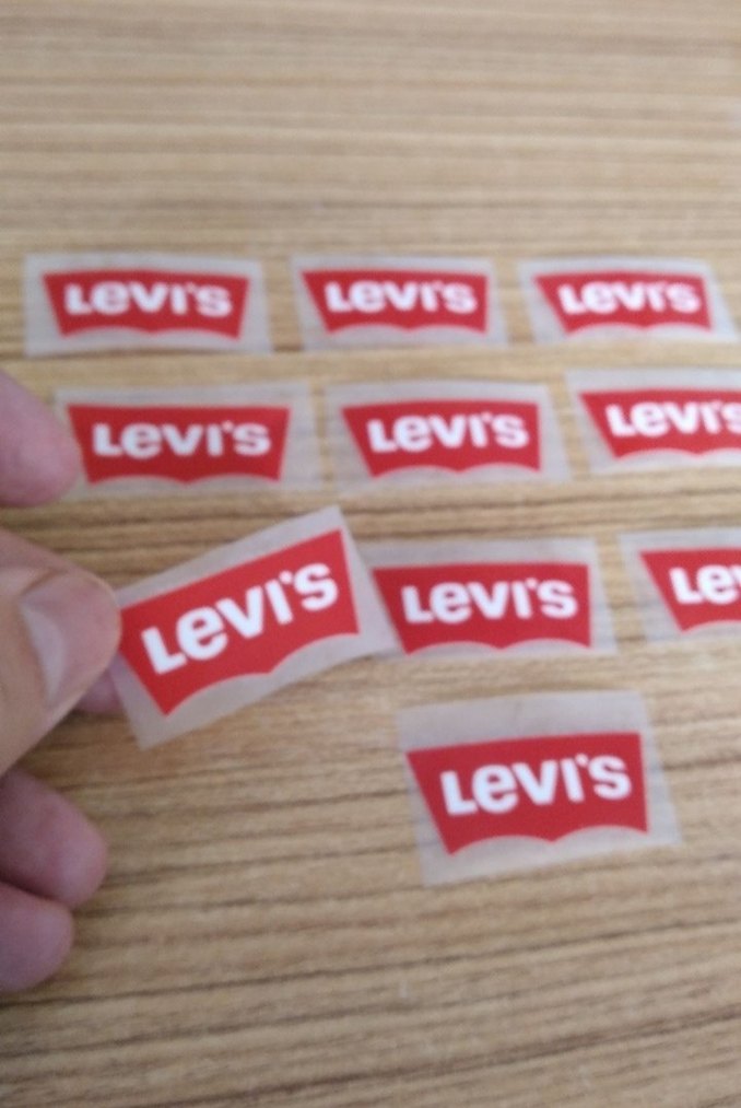 Levi's logosu içeren renkli erkek rozetleri, punk rock havası katmak için ideal. Kahverengi tonlar klasik tasarımla uyumlu.