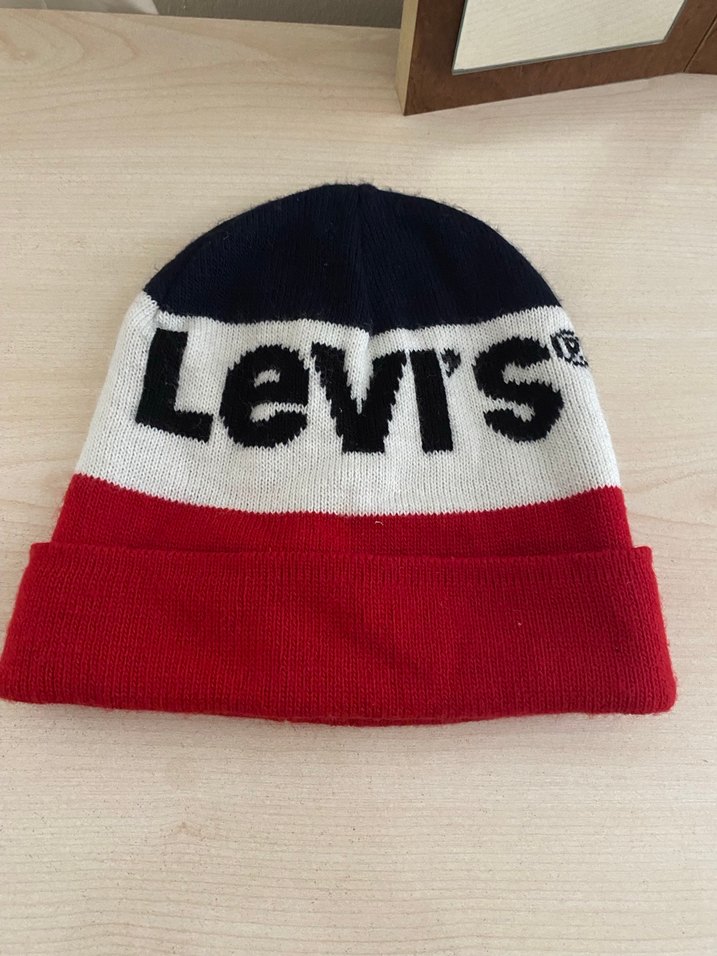 Levi's markalı, kırmızı, beyaz ve siyah renklerde örgü kadın bere. Yumuşak ve sıcak fleece kumaştan, rahat ve şık bir sokak stili sunar.