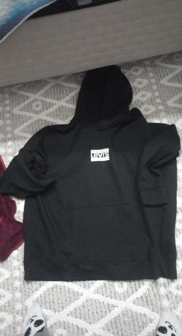 Levi's siyah kapüşonlu sweatshirt, bol kesim ve uzun kolludur. Yumuşak ve sıcak kumaştan yapılmıştır, günlük kullanıma uygundur.