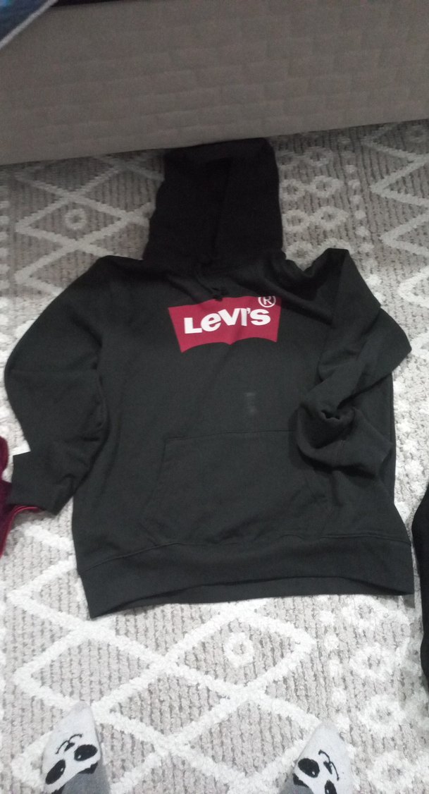 Levi's siyah kapüşonlu sweatshirt, uzun kollu ve bol kesimdir. Önünde baskılı logo bulunur ve yumuşak, sıcak kumaştan yapılmıştır.