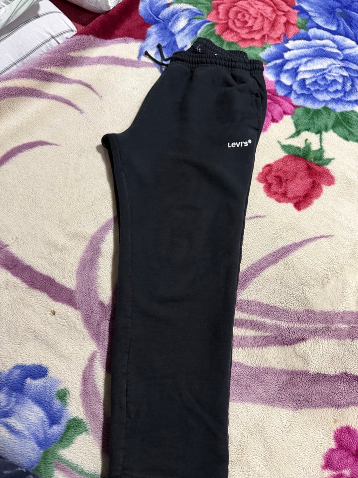 Levi's siyah eşofman altı, rahat kesim ve elastik bel bandına sahiptir. Yumuşak sentetik kumaştan üretilmiş olup, günlük kullanıma uygundur. Hafif batik desenlidir ve normal boydadır.