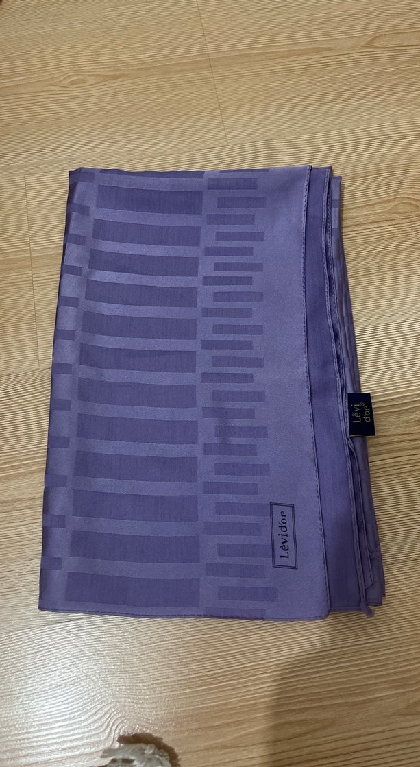 Mor ve gri tonlarında, pilili sentetik kumaştan yapılmış kadın şalı. Levidor marka, sade ve iş ortamına uygun.