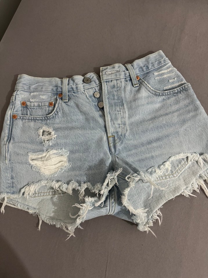 Düğmeli, bol kesim gri mini denim şort, yıpranmış detaylarla günlük sokak stili için uygun.